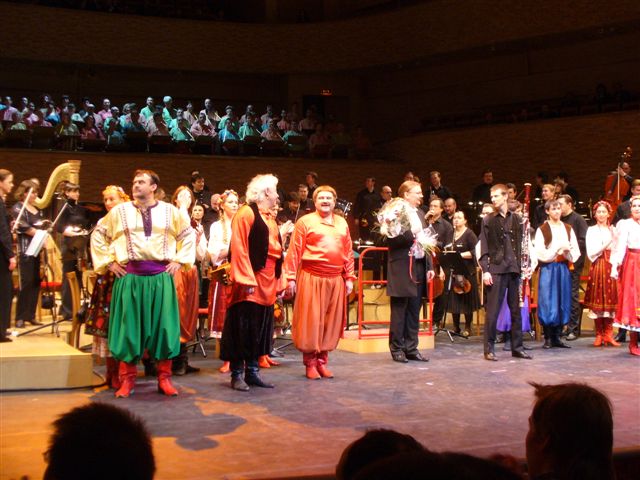 Сорочинская ярмарка 04.04.09. Спектакль очень понравился. Правда, дирижировал Смелков, а вроде бы должен был быть Гергиев.  Спели неплохо. Пели Черевик- Беззубенков, Хивря - Легкова, Парася - Ирина Васильева, Кум- Спехов, Грицько - Акимов, Попович - Попов  , Цыган - Самсонов, Чернобог - Морозов  . Васильева пела, может, и нормально, но шепелявила, как будто у нее проблемы с зубами. Общее впечатление хорошее. Пели уверенно, удивительно, почему этой оперы нет в постоянном репертуаре. П.С. В этот раз даже не забыла фотоаппарат.