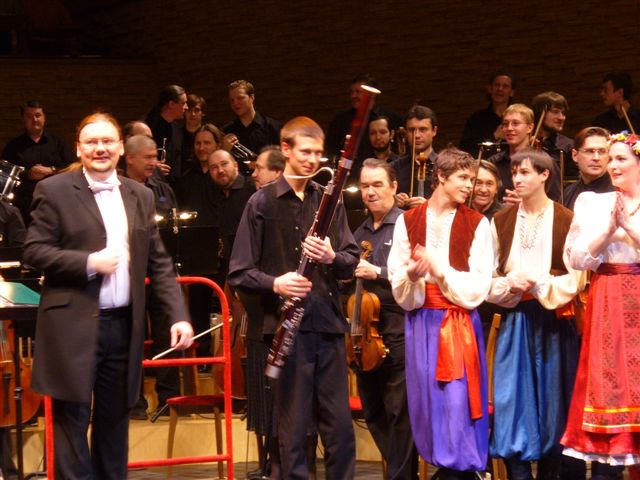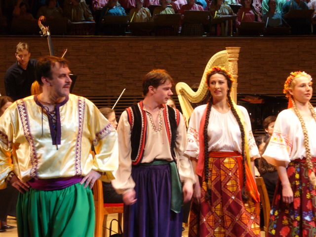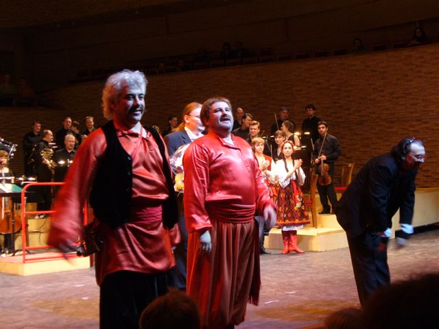 Сорочинская ярмарка 04.04.09. Спектакль очень понравился. Правда, дирижировал Смелков, а вроде бы должен был быть Гергиев.  Спели неплохо. Пели Черевик- Беззубенков, Хивря - Легкова, Парася - Ирина Васильева, Кум- Спехов, Грицько - Акимов, Попович - Попов  , Цыган - Самсонов, Чернобог - Морозов  . Васильева пела, может, и нормально, но шепелявила, как будто у нее проблемы с зубами. Общее впечатление хорошее. Пели уверенно, удивительно, почему этой оперы нет в постоянном репертуаре. П.С. В этот раз даже не забыла фотоаппарат.