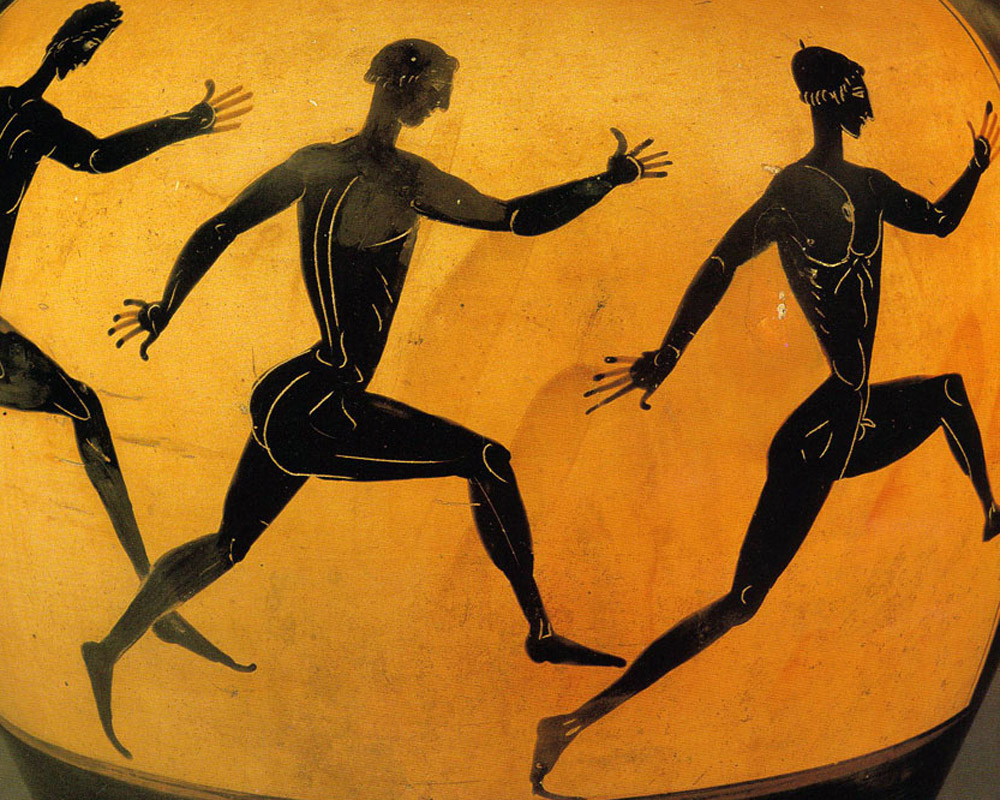 Вот есть же умные и наблюдательные люди !! Они взяли и заметили, что на древнегреческих чёрнофигурных вазах изображённые атлеты всегда неправильно бегают. У них правая рука движется вместе с правой ногой и наоборот. Хотя у нас всегда бегущие переставляют конечности в противофазе - правая рука - левая нога, и т д. Можно было бы списать это на художества древних гончаров-художников. Однако такая картина наблюдается почти всегда. Если это всё случайности, то сумма их уже закономерность. Некоторые из первооткрывателей этого феномена попытались бегать подобным образом и установили, что это не бег, а скорее разновидность прыжковой ходьбы. То есть у древних эллинов существовал отдельный, особенный вид бега - иноходью. Я тоже, в свою очередь решил произвести следственный эксперимент. Как стемнело взял собачу на поводок и в безлюдном тихом месте попробовал сначала идти переставляя конечности неправильно, а потом и бежать по-древлегречески. Но дурная собацька сорвала мне мой следственный эксперимент пытаясь произвольно менять направление бега на противоположное или в сторону под углом 90*, а потом и вообще начала упираться. Но я успел уяснить, что это вообще то что то интересное, просто к этому бегу нужно приспосабливаться или специально тренироваться. А если обратиться за подсказками к матушке живой природе, то можно обнаружить, что и в природе некоторые виды живности используют подобную манеру бега и хода. Так ходят слоны, жирафы, геены мерзкие, а так же лошади! Есть монгольские низкорослые лошадки, которые всегда так бегают, но есть и те лошади, которых специально обучают иноходи. При этом те, кто в теме коневодческой, знают, что на длинных дистанциях иноходцы дают фору рыси и всадник меньше устаёт при этом. Но иноходь опасна падением лошади при беге по пересечённой местности, тогда как по гладкой ровной поверхности аллюр иноходью безопасен и предпочтителен. Он более экономичен, если так можно сказать. Из этого можно вывести предположение, что древние греки иноходью бегали на длинные дистанции, как более экономичным видом бега. У них, наверное, был такой вид спорта. А у нас его нет. До чего же мы одичали! Если бы это открытие было сделано 100 или 300 лет назад, оно бы гарантированно получило развитие. А сейчас, я не уверен. Скорее всего оно станет достоянием энтузиастов и развития в спорте не получит. Каждый раз меня потрясает Эллада. Всё, что есть в современной культуре создано или ведёт свой отсчёт от античной Древней Греции. Неубиваемый классицизм в архитектуре, незабываемая мифология, спорт и театр, натурфилософия возрождённая как естествознание, всё нам досталось от греков, которых давно уже нет. Как свет погасшей звезды классическая древнегреческая культура, возрождённая средневековыми эстетами продолжает нести свою миссию - делать человека человеком и не давать ему превратиться в скотину. Человека от скотины отличает только то обстоятельство, что он с детства окультивирован и процесс этот не прост и труден. Всё. Я устал. Но продолжение обещаю.
